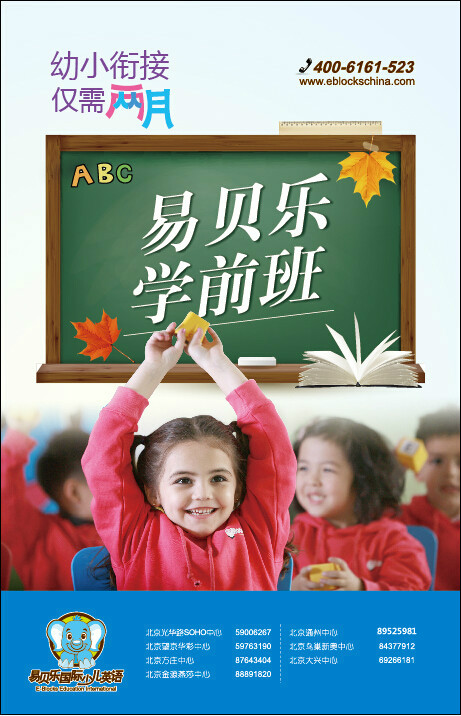 易贝乐国际少儿英语从多年的教学实践中研究整理出只需2个月就可以让孩子快速进入小学学习状态的幼小衔接教学体系。