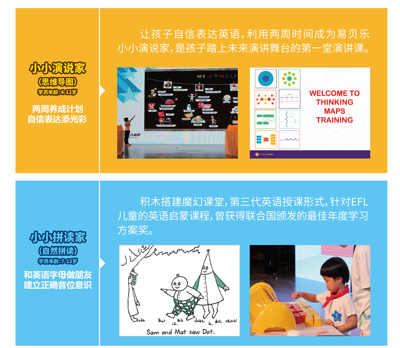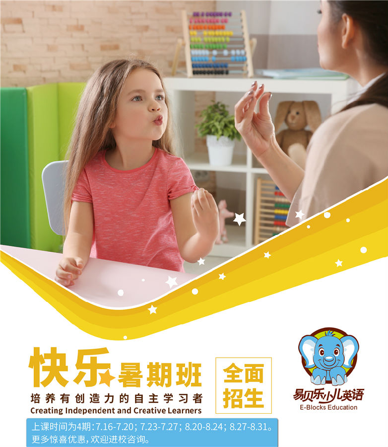 北京易贝乐少儿英语暑期班开始招生啦,在为期一个半月的暑期班时间内,家长可任选两期报名。易贝乐暑假班课程通过思维导图、自然拼读、影视口语三大内容,短时间内强化孩子的听说读写能力,更对孩子的思维逻辑能力,社交能力进行针对强化。
